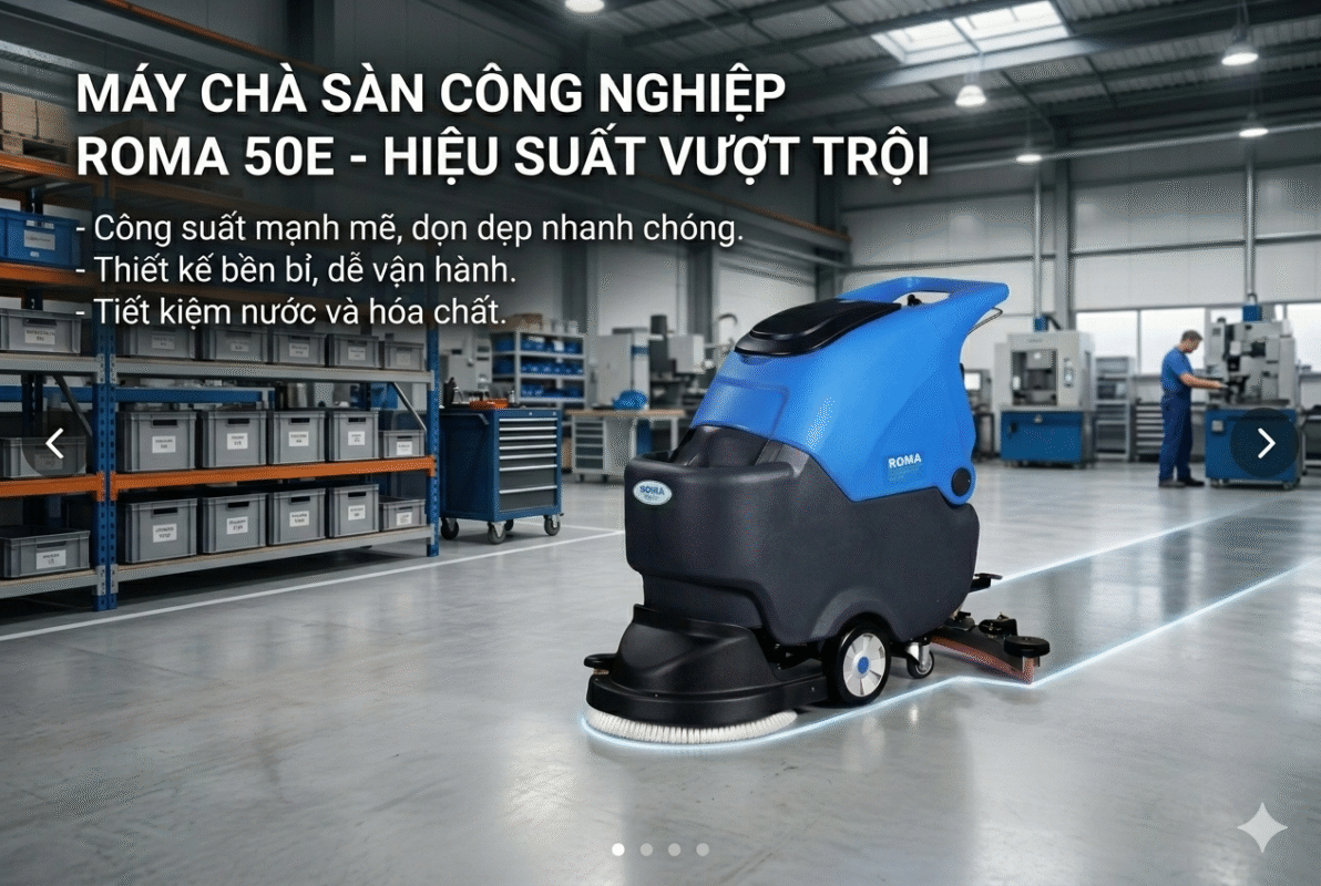 - Hệ thống máy mài công nghiệp hạng nặng: Hoàng Gia trực tiếp sử dụng các dòng máy “khủng” như Tezaro Clean Tech CT-12X và các dòng máy điều khiển từ xa. Điều này đảm bảo xử lý tốt ngay cả những mặt sàn bê tông mác cao nhất tại các nhà xưởng Quận 9, Quận 12 hay các khu công nghiệp Tân Bình, Tân Tạo.